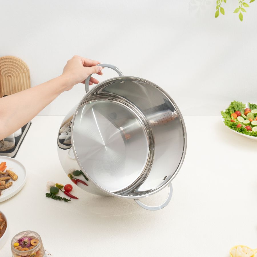 Thiết kế thành nồi cao 22cm giúp hạn chế tình trạng trào nước khi đun sôi, đặc biệt khi luộc gà hoặc nấu các món nước như canh, súp. Điều này không chỉ giữ bếp sạch sẽ mà còn giảm thiểu nguy cơ cháy nổ do tràn nước ra bếp gas hoặc bếp điện.