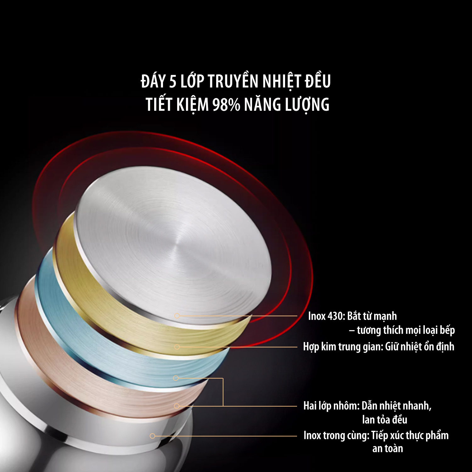 Đáy 5 lớp: Nấu nhanh, tiết kiệm năng lượng