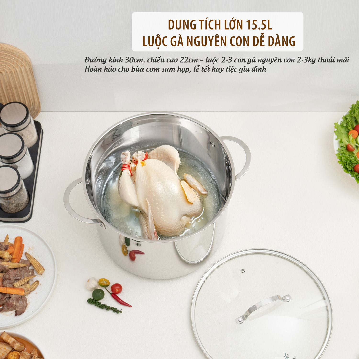 Dung tích lớn: Luộc gà nguyên con không chặt