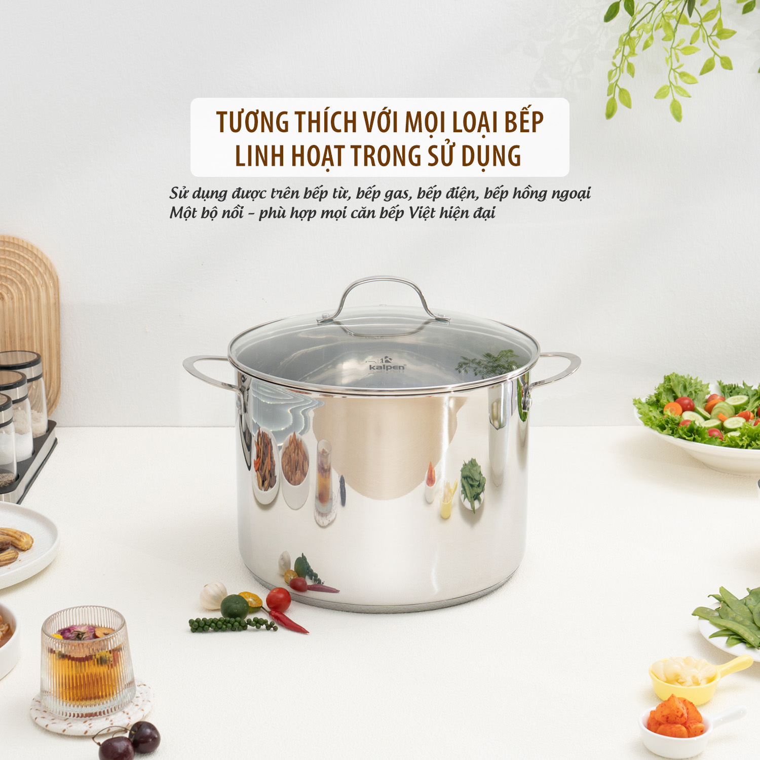 Dù bạn đang dùng bếp gas, bếp hồng ngoại hay bếp từ, nồi luộc gà Kalpen Lermat L30Pro đều hoạt động hiệu quả và tiết kiệm năng lượng. Nhờ lớp ngoài cùng là inox 430, sản phẩm không kén bếp, phù hợp với mọi hộ gia đình từ thành thị đến nông thôn.
