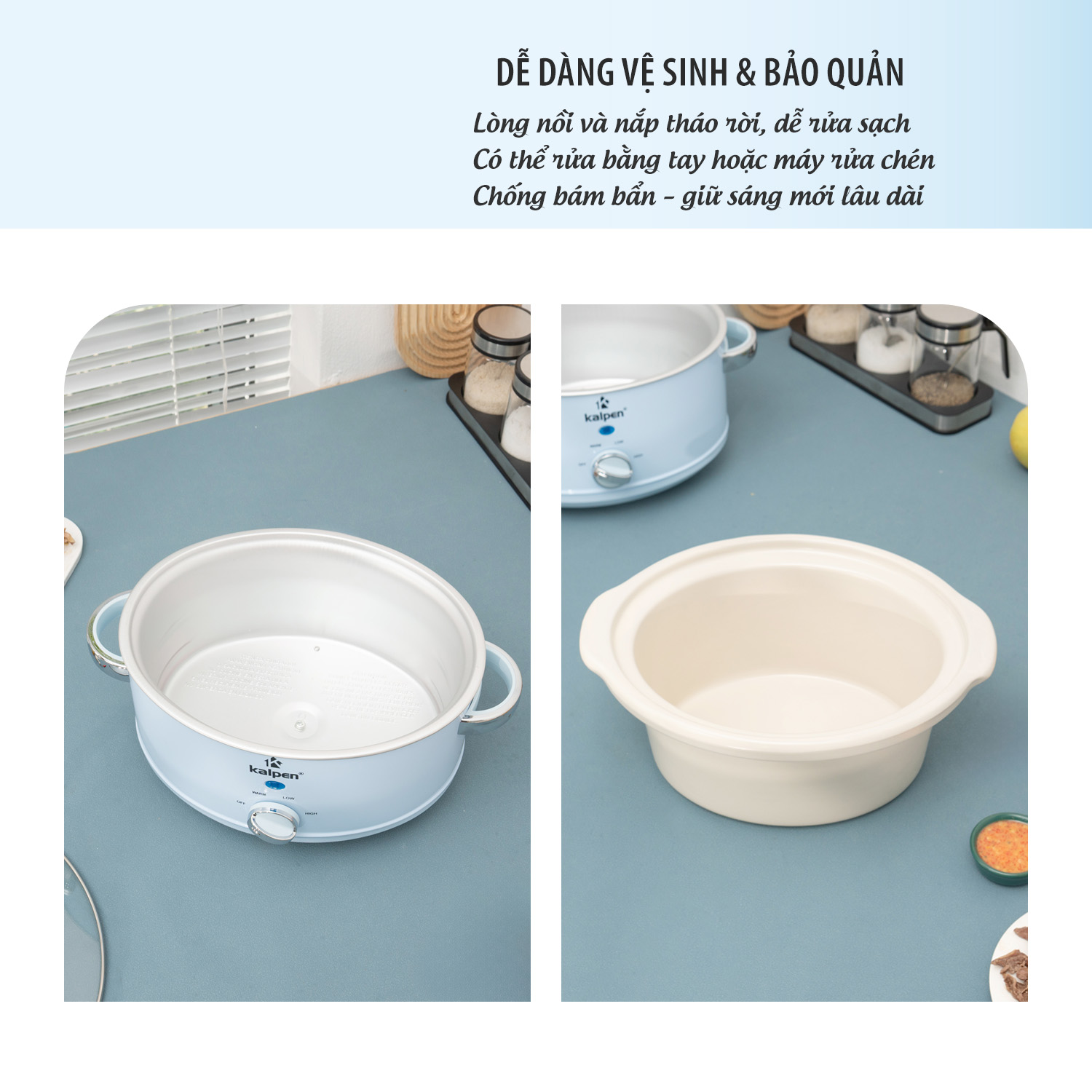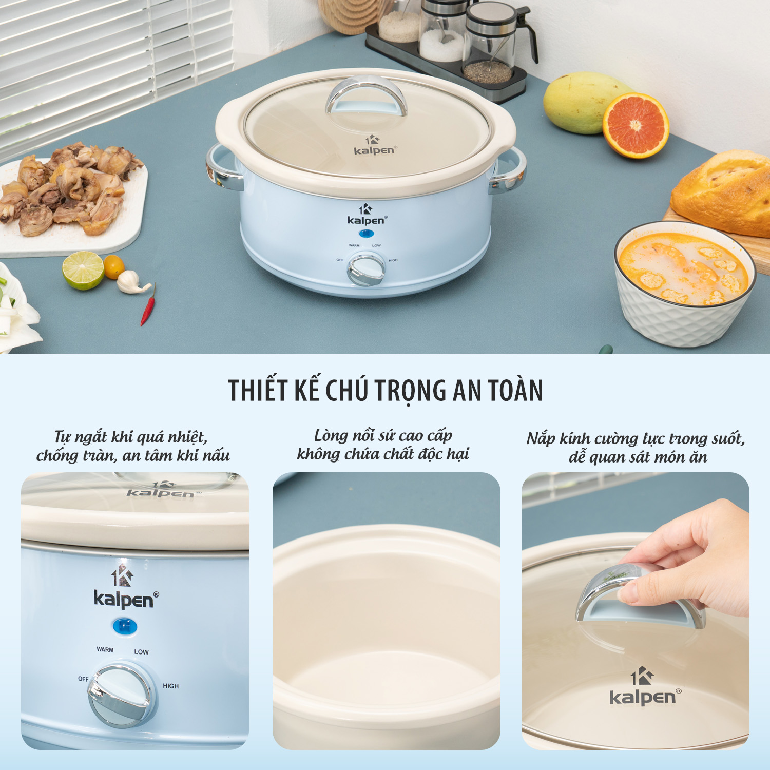 Nồi nấu chậm Kalpen SK1 an toàn cho người sử dụng với nhiều tính năng bảo vệ: