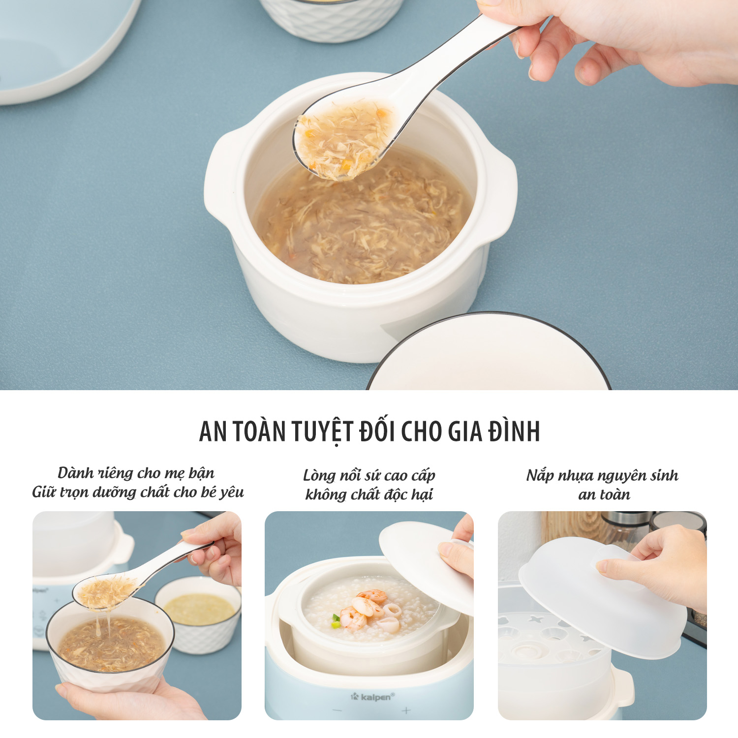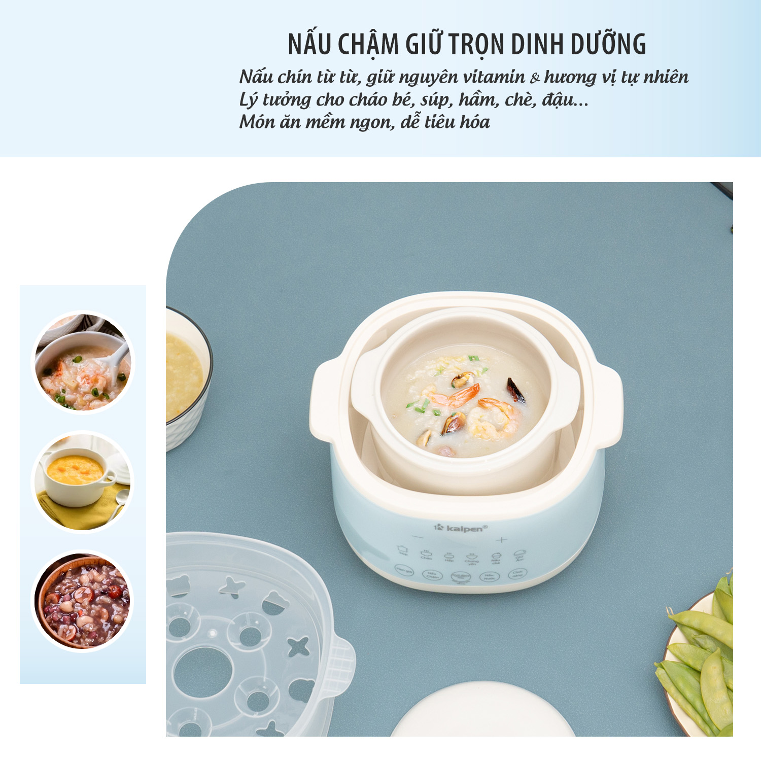 Kalpen SK2 phù hợp với nhiều món ăn như nấu cháo, soup, hầm thịt, nấu chè và nhiều món canh, món kho khác giúp bạn dễ dàng sáng tạo nhiều món ăn ngon và bổ dưỡng cho gia đình mà không mất nhiều công sức, thời gian vào bếp rất thích hợp với những gia đình hiện đại đặc biệt là gia đình trẻ, gia đình có trẻ nhỏ hoặc người già.