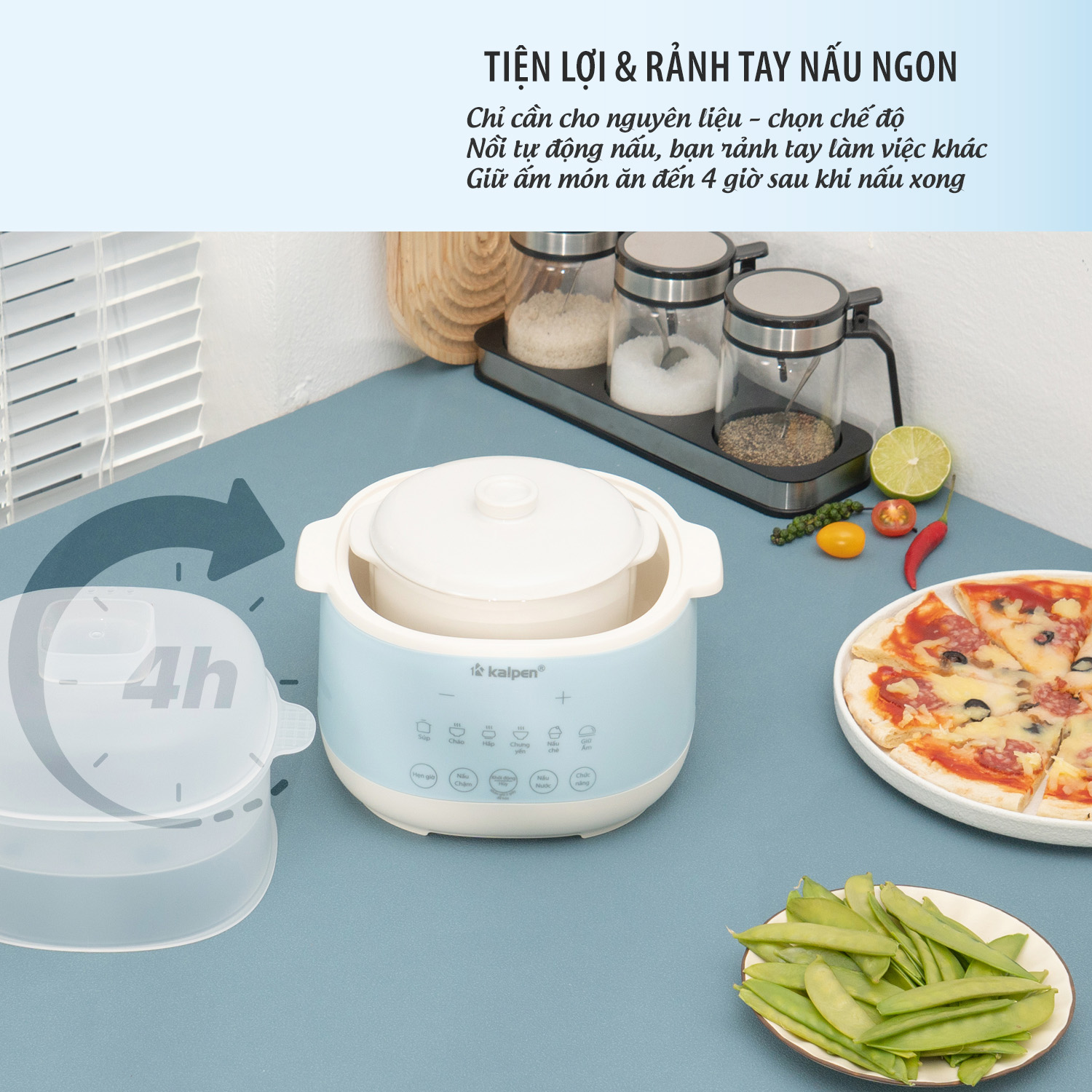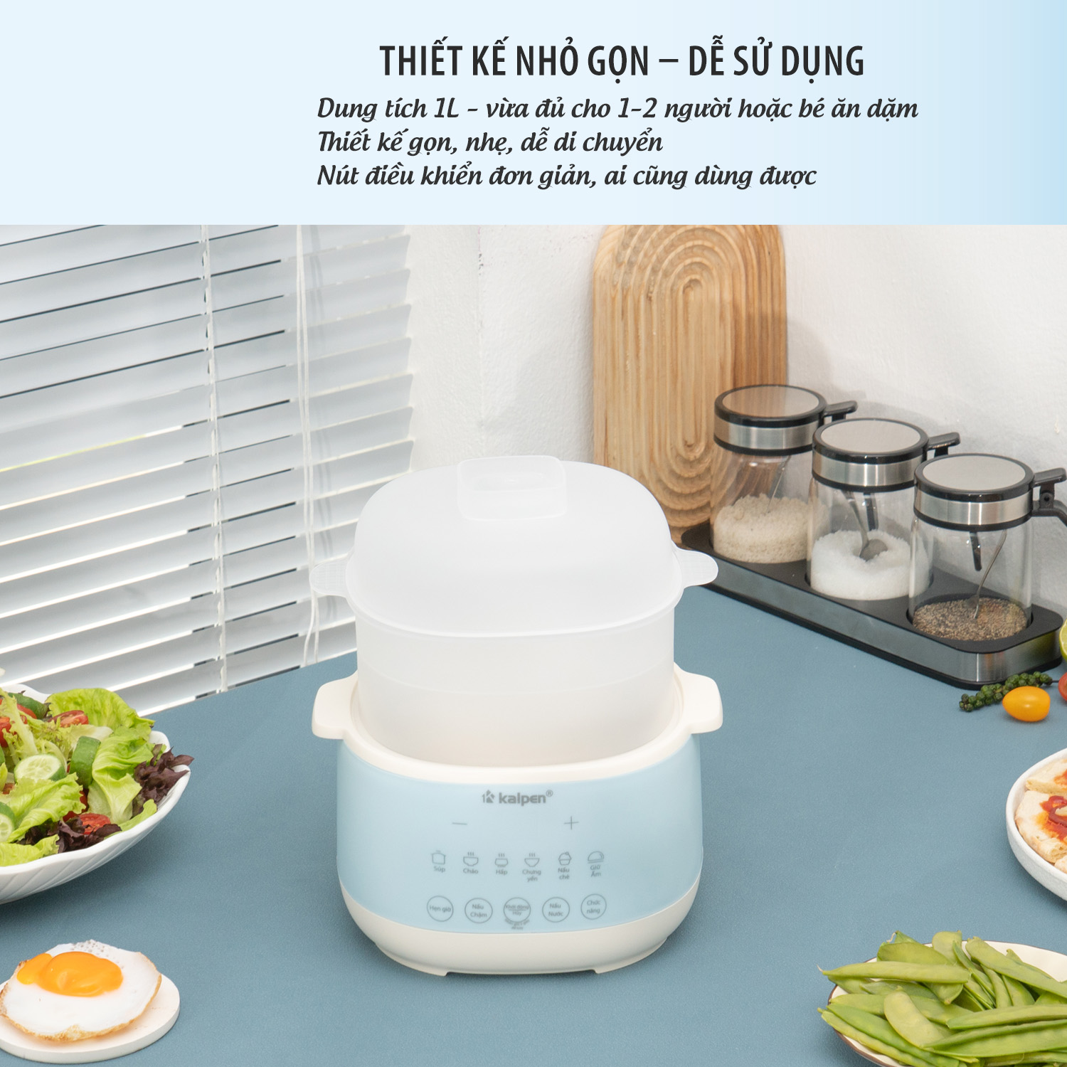 Nồi nấu chậm Kalpen SK2 được thiế kế nhỏ gọn, xinh xắn, màu sắc trẻ trung, hiện đại, dễ dàng di chuyển ở nhiều vị trí nhà bếp và có thể sử dụng cả trên bàn ăn.