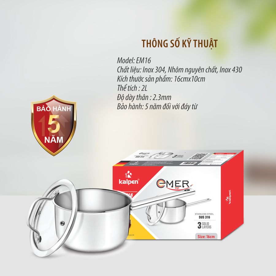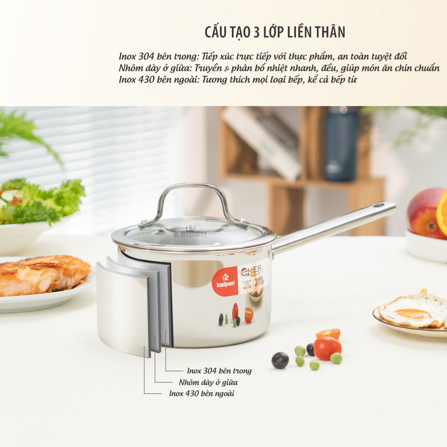 Giới thiệu với bạn sản phẩm mới của nhà Kalpen: Quánh inox 3 lớp liền khối Kalpen Emer EM16