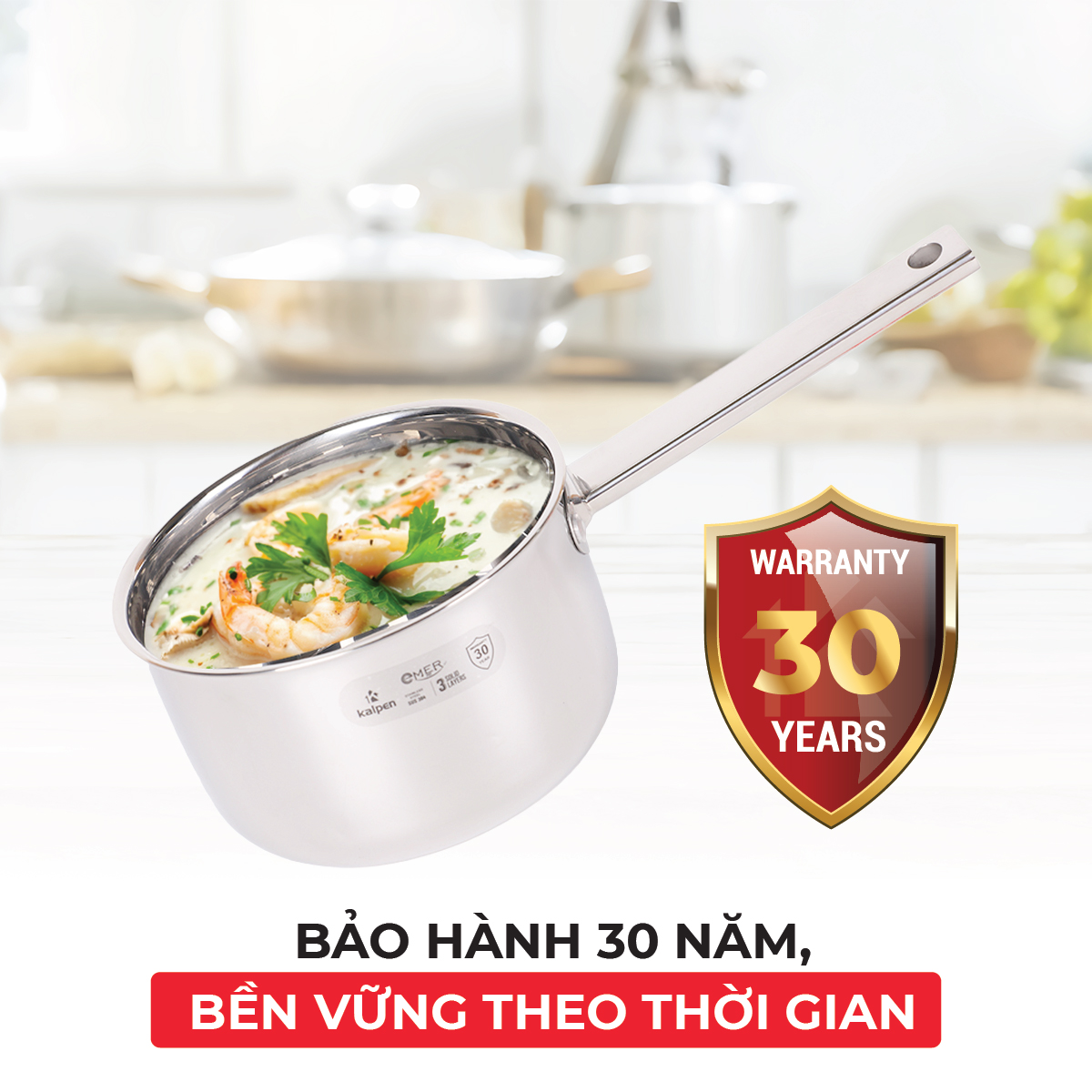 Quánh inox 3 lớp liền khối Kalpen Emer là sản phẩm gia dụng đạt tiêu chuẩn chất lượng. Thời gian bảo hành sản phẩm là 30 năm vì vậy bạn hoàn toàn yên tâm về chất lượng sản phẩm khi sử dụng.