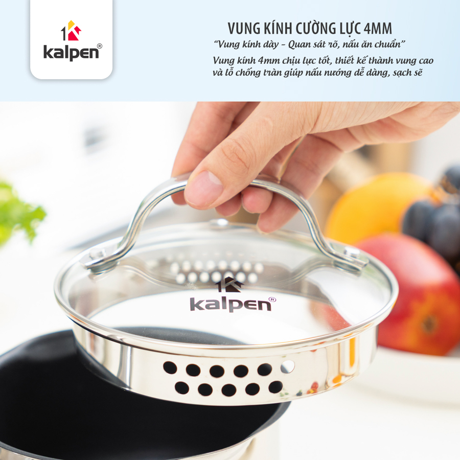 Vung kính trong suốt dày 4 mm có khả năng chịu nhiệt và chịu lực cao, giúp dễ dàng quan sát thực phẩm trong quá trình nấu nướng mà vẫn đảm bảo an toàn.