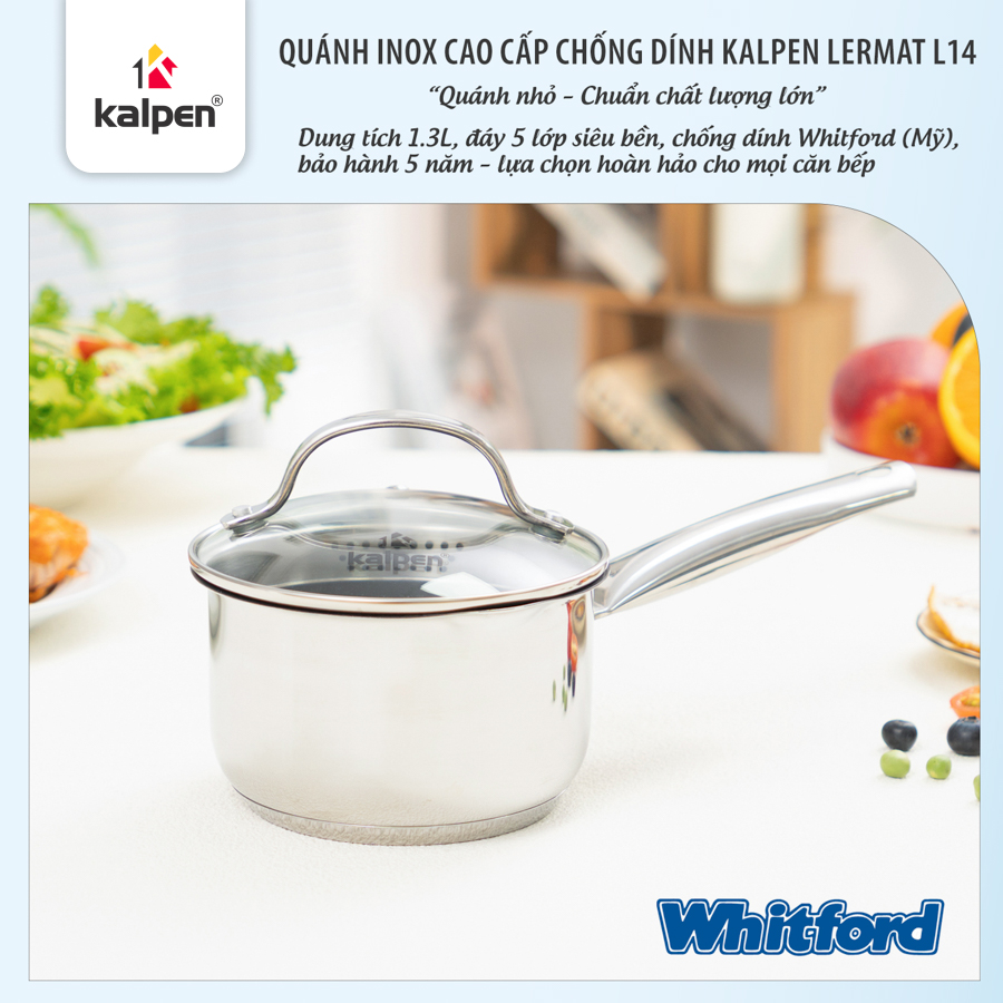 Video giới thiệu quánh Inox chống dính 5 lớp đáy miệng rót Kalpen Lermat L14 14 cm