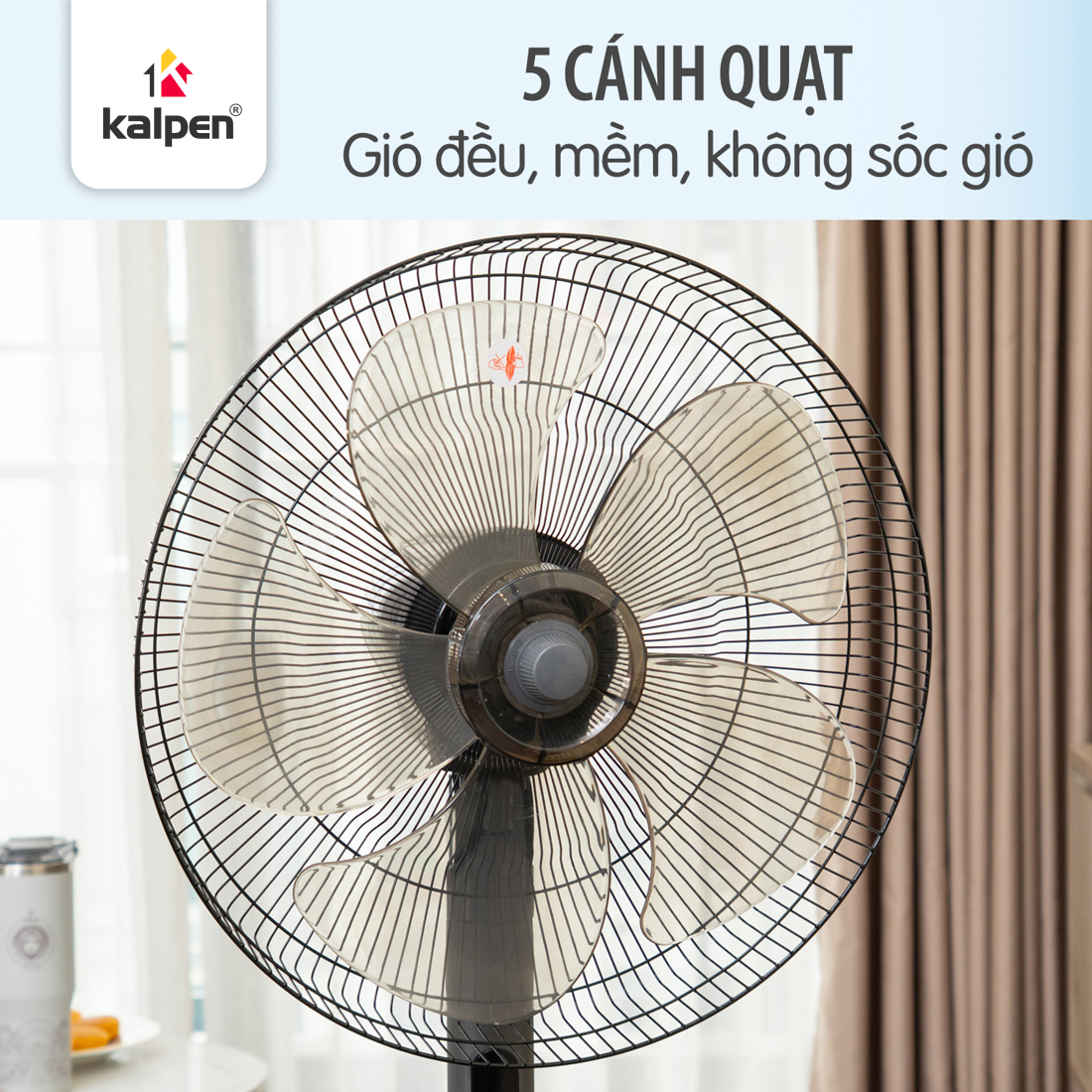 Cánh quạt chất liệu AS bền nhẹ, thiết kế tối ưu giúp gió thổi xa – tỏa rộng – êm dịu, giảm cảm giác gió rít khó chịu khi thổi trực tiếp.