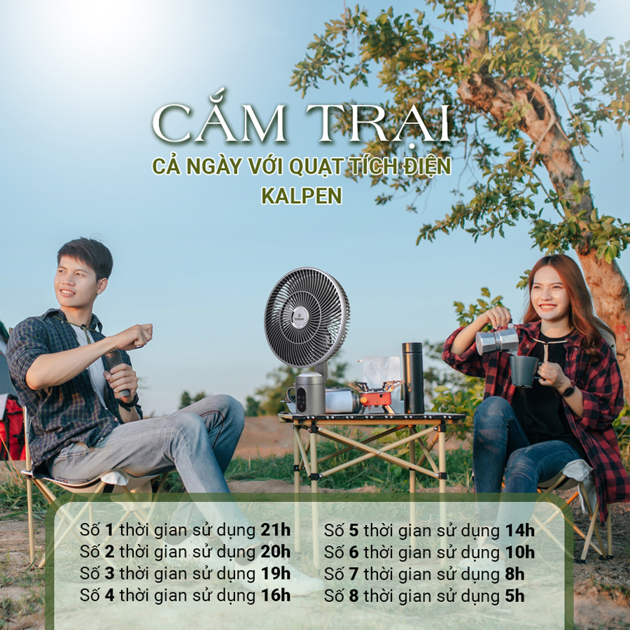 Ngoài chế độ cắm điện sử dụng thông thường, Quạt tuần hoàn không khí Kalpen CFK-999 có chức năng tích điện với dung lượng pin lớn Pin lithium 10.000mA cho thời gian có thể sử dụng tối đa là 21h đồng hồ rất hữu ích cho những ngày hè nóng bức bị mất điện hay cực kì tiện lợi để sử dụng ngoài trời khi đi cắm trại, picnic, tụ họp…