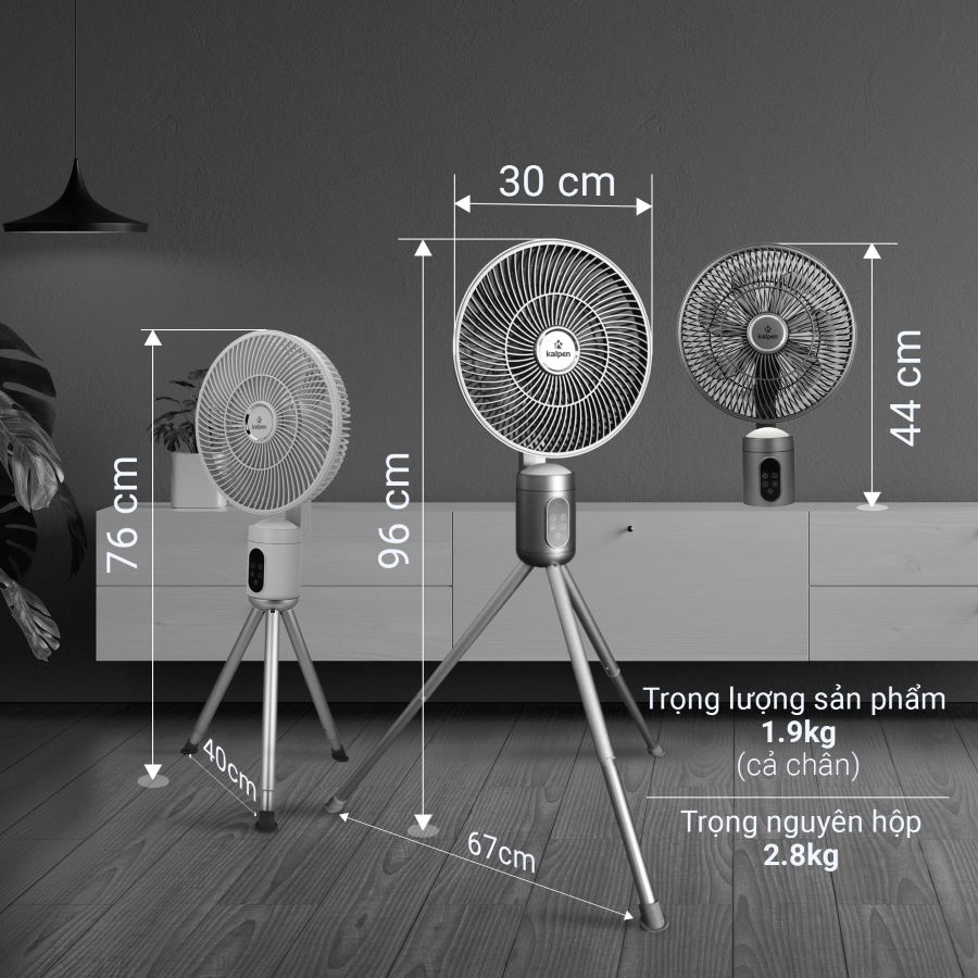 Quạt điều hòa không khí Kalpen CFK-999 có màu sắc nhãn nhặn, hiện đại, thiết kế nhỏ gọn, trọng lượng quạt kèm chân đế chưa tới 2kg. Chân quạt có thể gấp gọn dễ dàng sử dụng trong nhà: treo tường, để bàn… hoặc có thể mang đi cắm trại, picnic.