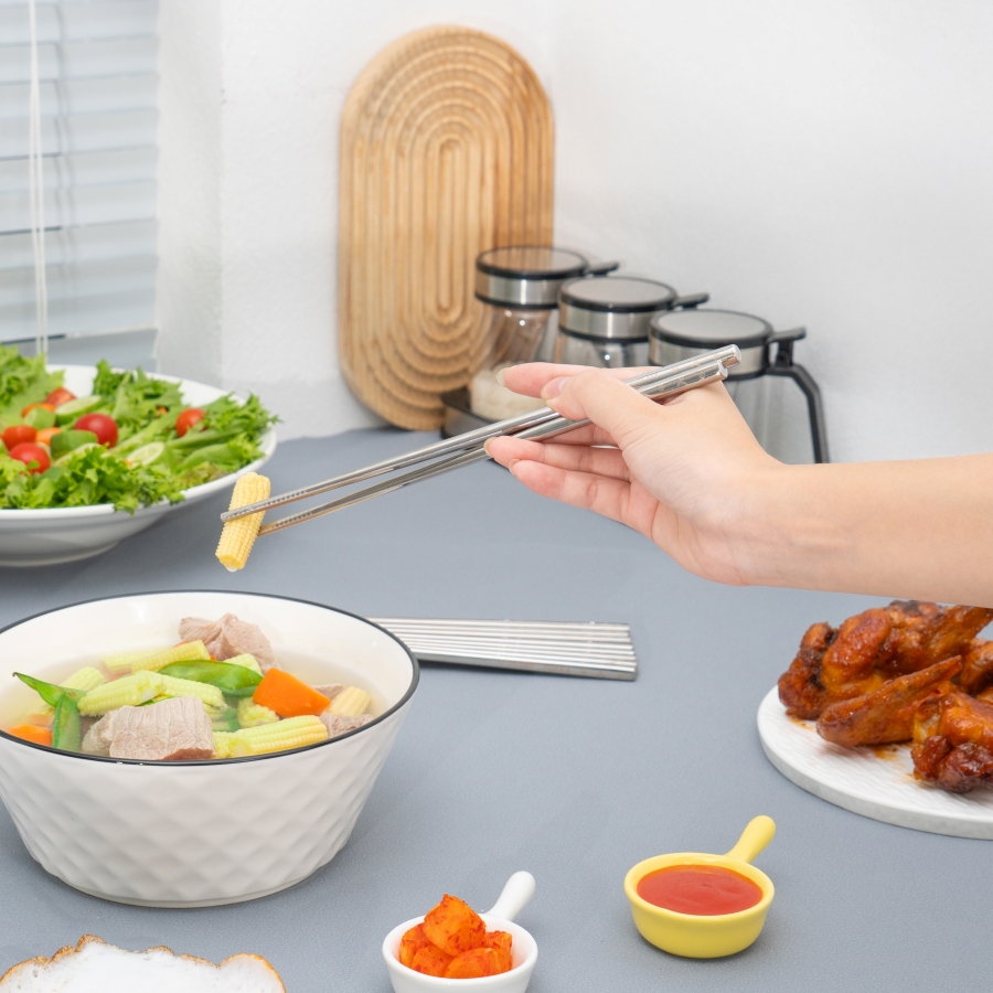 • Đũa inox 316 loại bỏ hoàn toàn nguy cơ nấm mốc, hóa chất độc hại hay biến dạng do nhiệt.