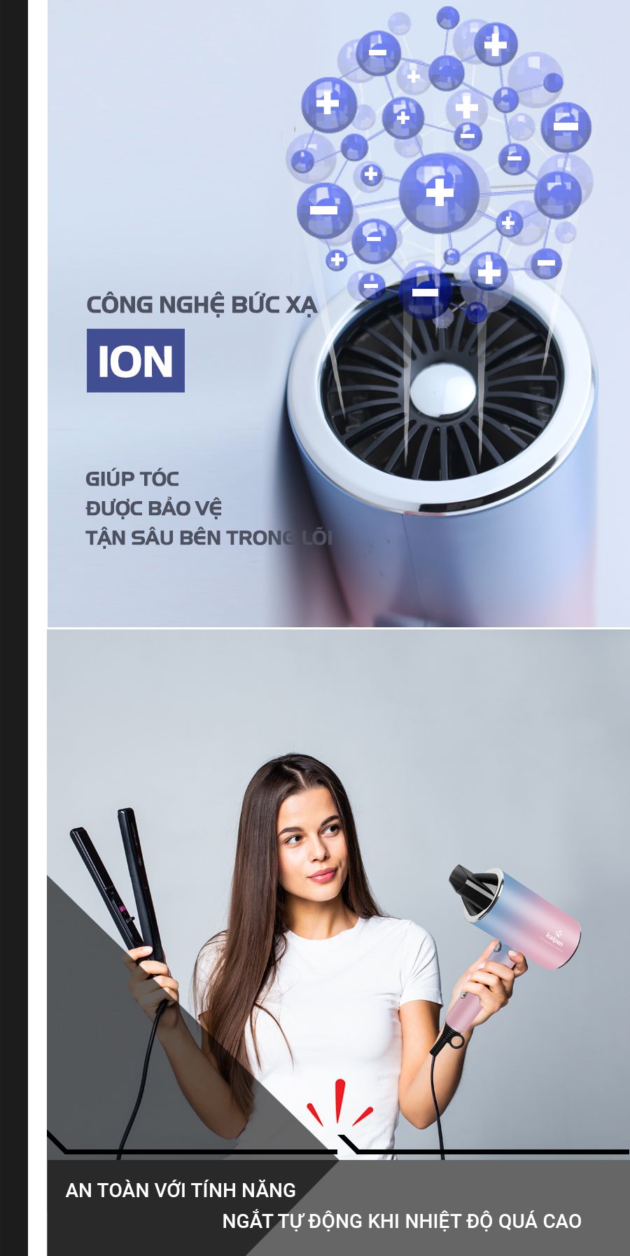 Các hạt ion còn có chức năng phá vỡ điện tích các hạt bụi bẩm bám trên da đầu, giúp da đầu khô thoáng, sạch sẽ hơn sau khi sấy. Mang lại cho người sử dụng cảm giác thư giãn, thoải mái.