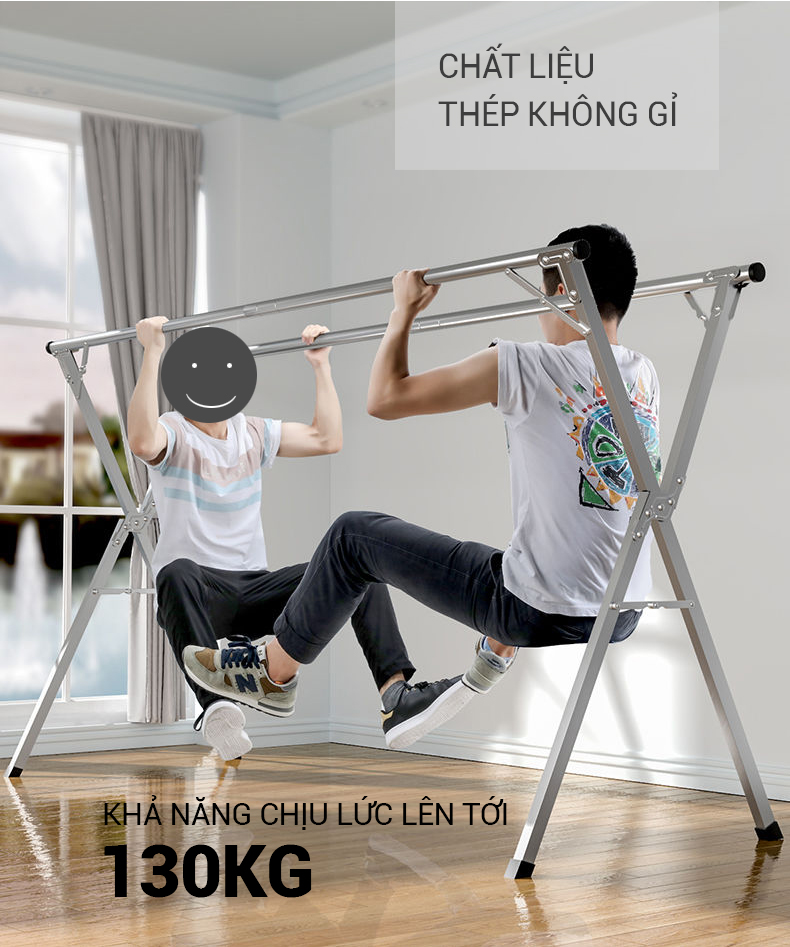 Giá phơi quần áo thông minh với thiết kế khung chữ X với ưu điểm chịu lực cực kỳ tốt: Cơ chế gập khung chữ X sẽ giúp cho giàn khung của cây phơi đồ sẽ trở nên chắc chắn hơn và rất khó bị xô đổ hoặc bị tác động từ các lực bên ngoài.