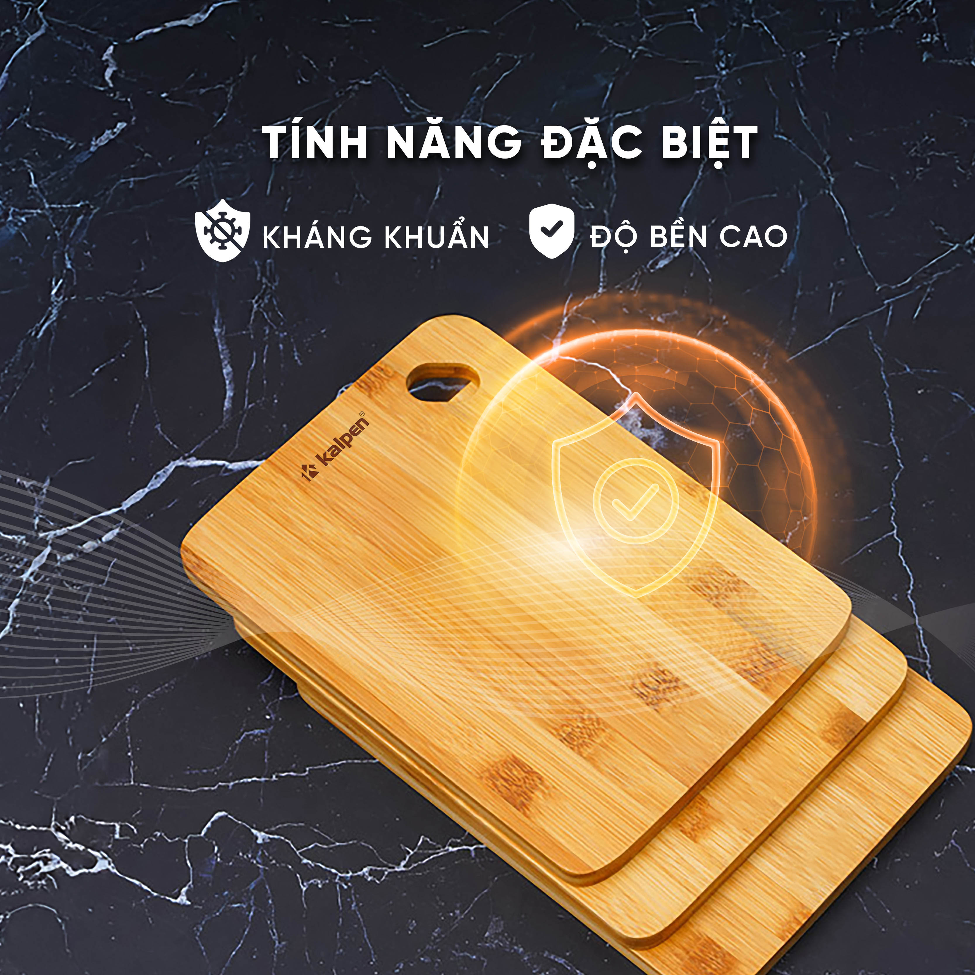 Ưu điểm của thớt tre kháng khuẩn Kalpen là bề mặt cứng, không xốp nên hầu như không ngấm hay thấm nước vì thế chống lại rất tốt các vết cắt, không bị cong vênh, không bị nứt vỡ nên vi khuẩn rất khó tồn tại trên bề mặt thớt.