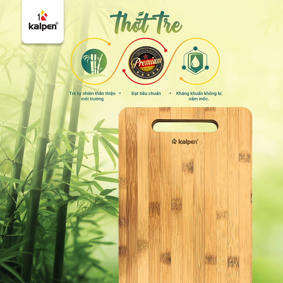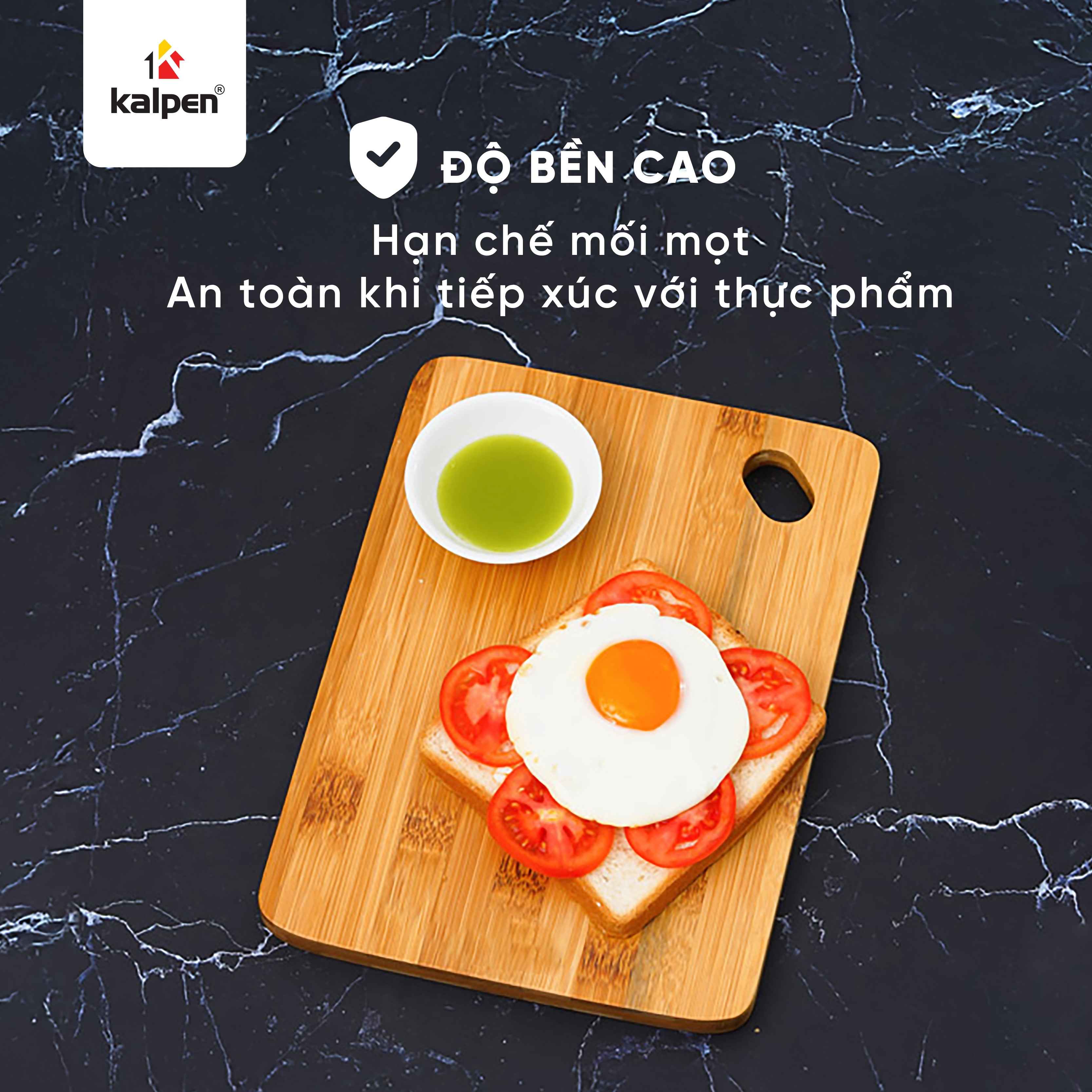 Thớt tre Kalpen được làm từ tre Việt Nam tự nhiên, đạt tiêu chuẩn châu Âu. Sản phẩm an toàn cho sức khỏe, không chứa chất độc hại, phù hợp sử dụng trực tiếp trong chế biến và bày trí thực phẩm.