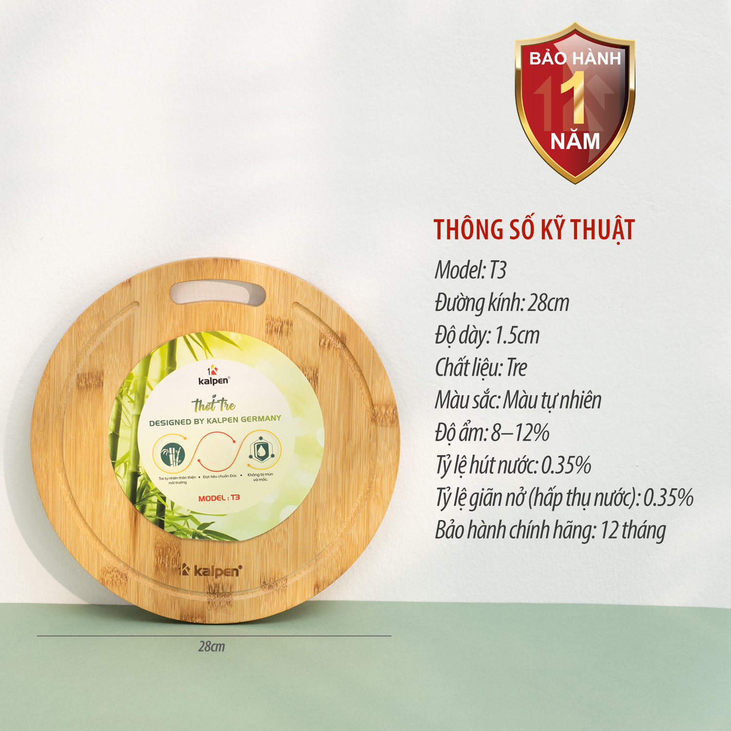 Thớt tre kháng khuẩn Kalpen T3 dùng để cắt, thái, băm, chặt các loại thực phẩm khác nhau. Đồng thời, có thể sử dụng để làm khay đựng đồ ăn, khay trang trí trên bàn ăn.