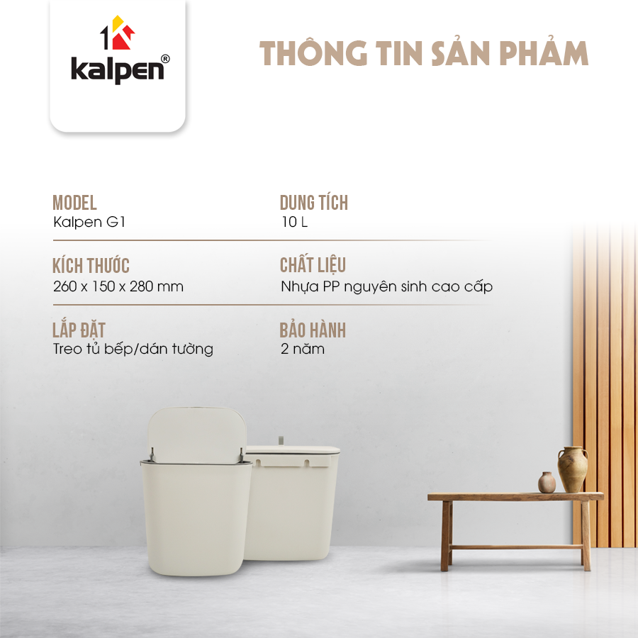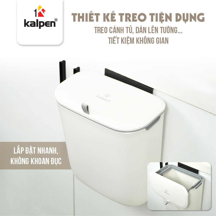 Thùng rác được thiết kế linh hoạt, có thể treo trực tiếp lên cánh tủ bếp hoặc dán tường, giúp tiết kiệm diện tích và thuận tiện khi sử dụng, đặc biệt phù hợp với không gian bếp hoặc phòng tắm nhỏ.
