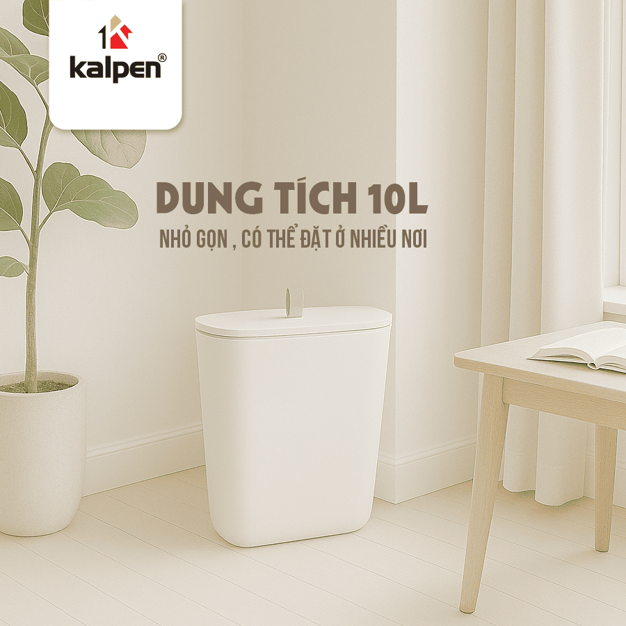 Với dung tích 10 L, thùng rác đáp ứng tốt nhu cầu sinh hoạt hằng ngày của gia đình, phù hợp để đựng rác nhà bếp, phòng tắm hoặc khu vực sinh hoạt chung.