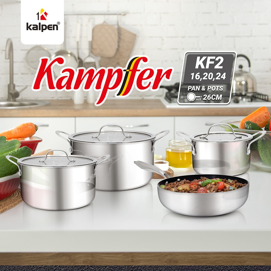 1. Bộ nồi chảo inox 3 lớp liền khối Kalpen Kampfer