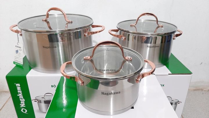 - Bộ nồi 5 đáy Nagakawa NAG1352 được làm từ chất liệu inox 304 cao cấp, không bị oxy hóa, không han gỉ và dễ dàng vệ sinh giúp nồi luôn sáng bóng.