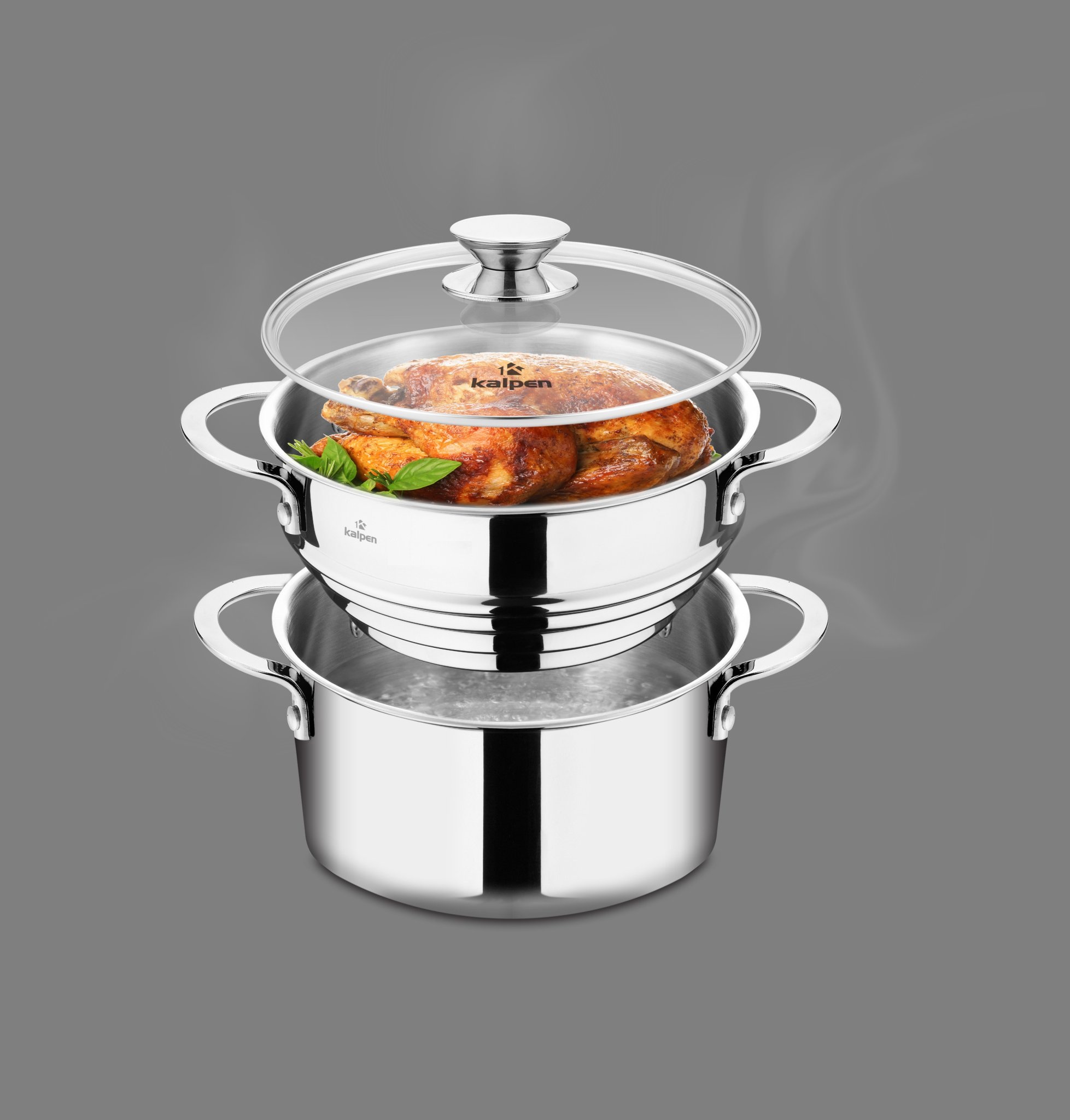 Xửng hấp inox được rất nhiều bà nội trợ và đầu bếp tin dùng. Với những ưu điểm làm chín thức ăn nhanh chóng bằng cách hấp cách thuỷ. Vì vậy, nó sẽ giữ được màu sắc, kiểu dáng cũng như chất dinh dưỡng của thực phẩm. Sử dụng bộ xửng hấp inox giúp bạn tiết kiệm tối đa thời gian chế biến, an toàn vệ sinh thực phẩm và dễ dàng vệ sinh sau khi sử dụng. Sản phẩm luôn sáng bóng như mới, độ bền cao. Có thể nấu, hấp, luộc, hầm các loại thực phẩm khác nhau. Hãy tìm hiểu sản phẩm này cùng Kalpen nhé!